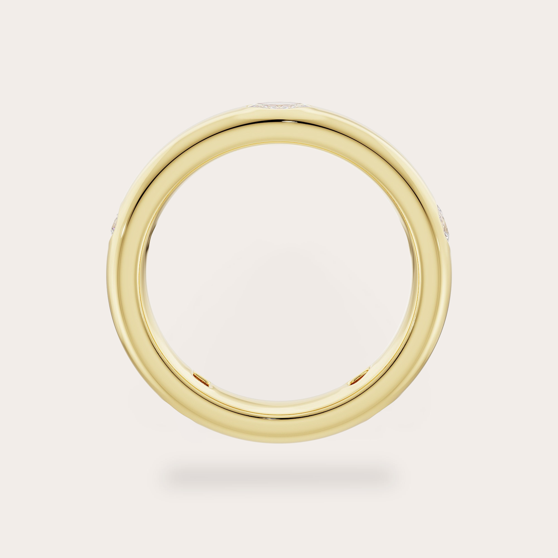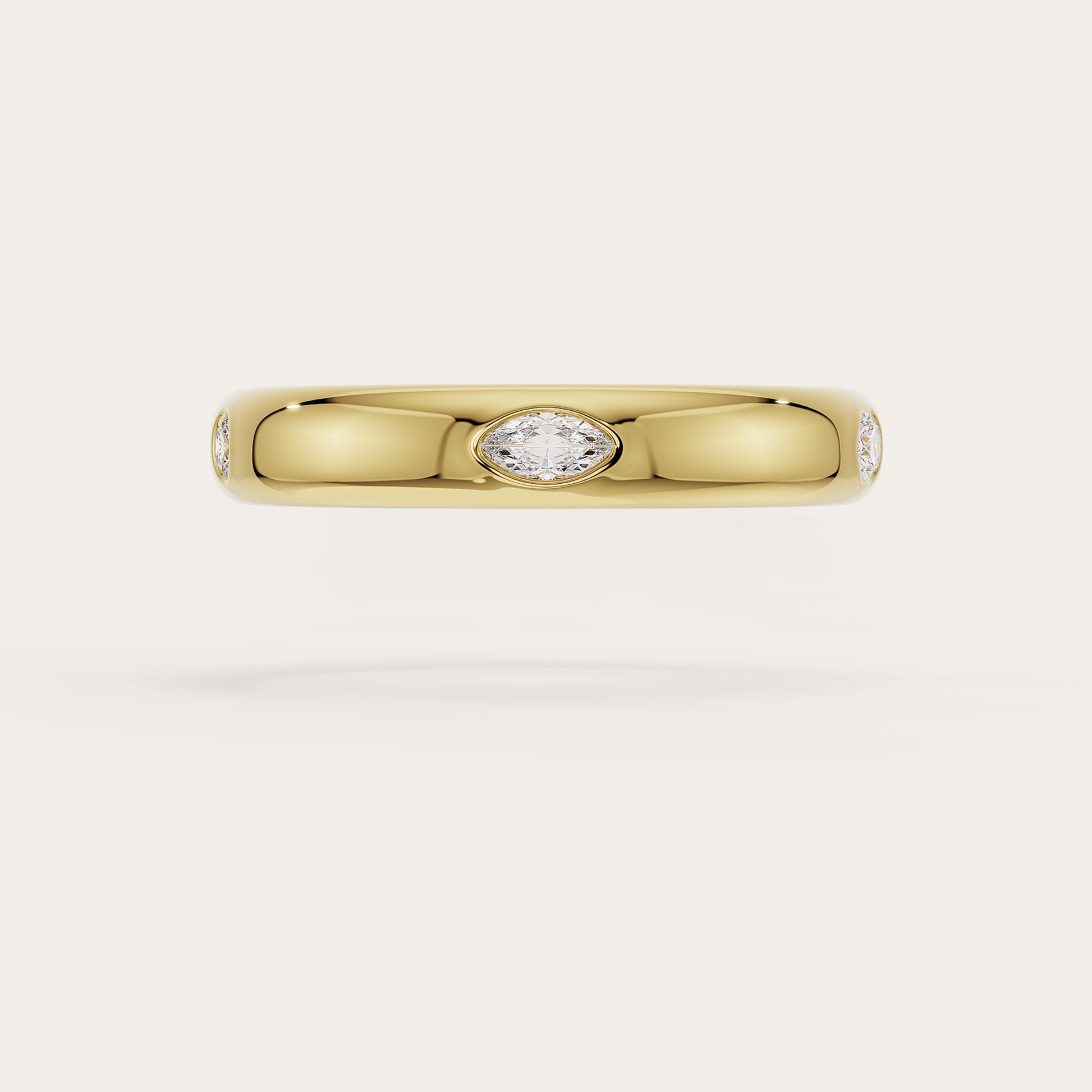 Floating in the most peculiar way. High polish 14k gold envelopes five separate diamonds: pear, oval, marquis, round, princess. Each Atmos Band is made-to-order and requires a lead time of 4 to 6 weeks. If your size is not shown, please choose the option closest and leave a note at checkout. Eternity bands cannot be resized.