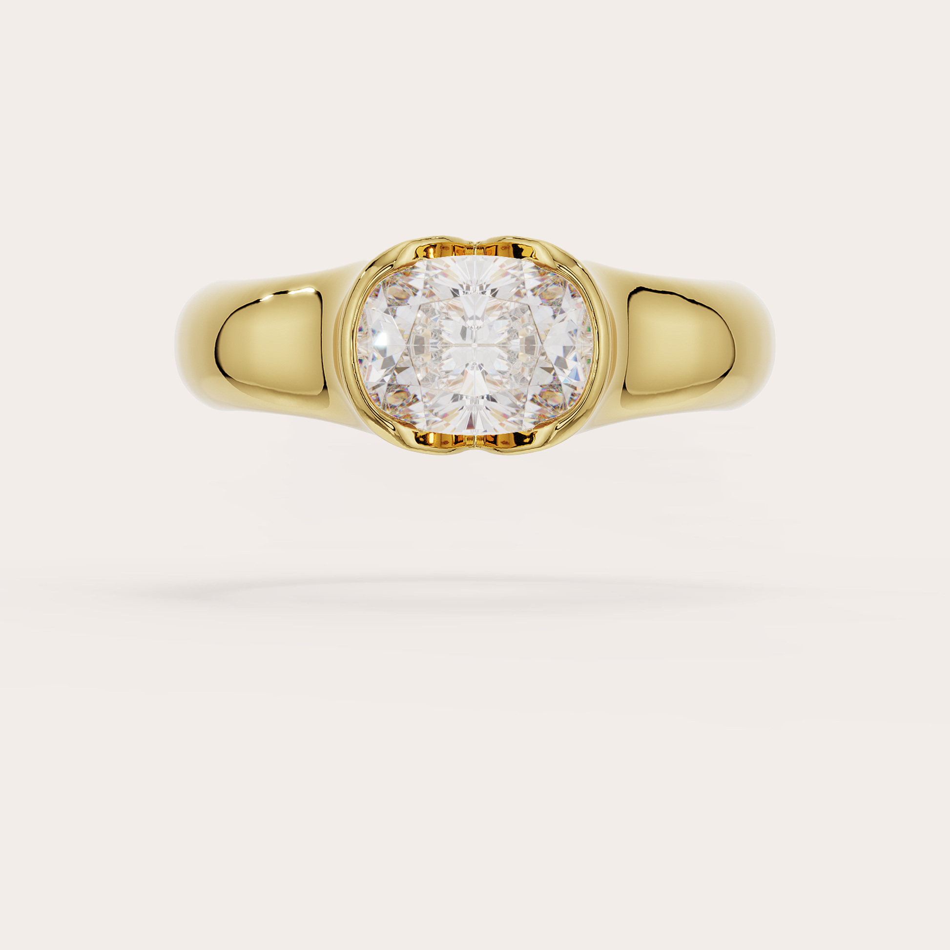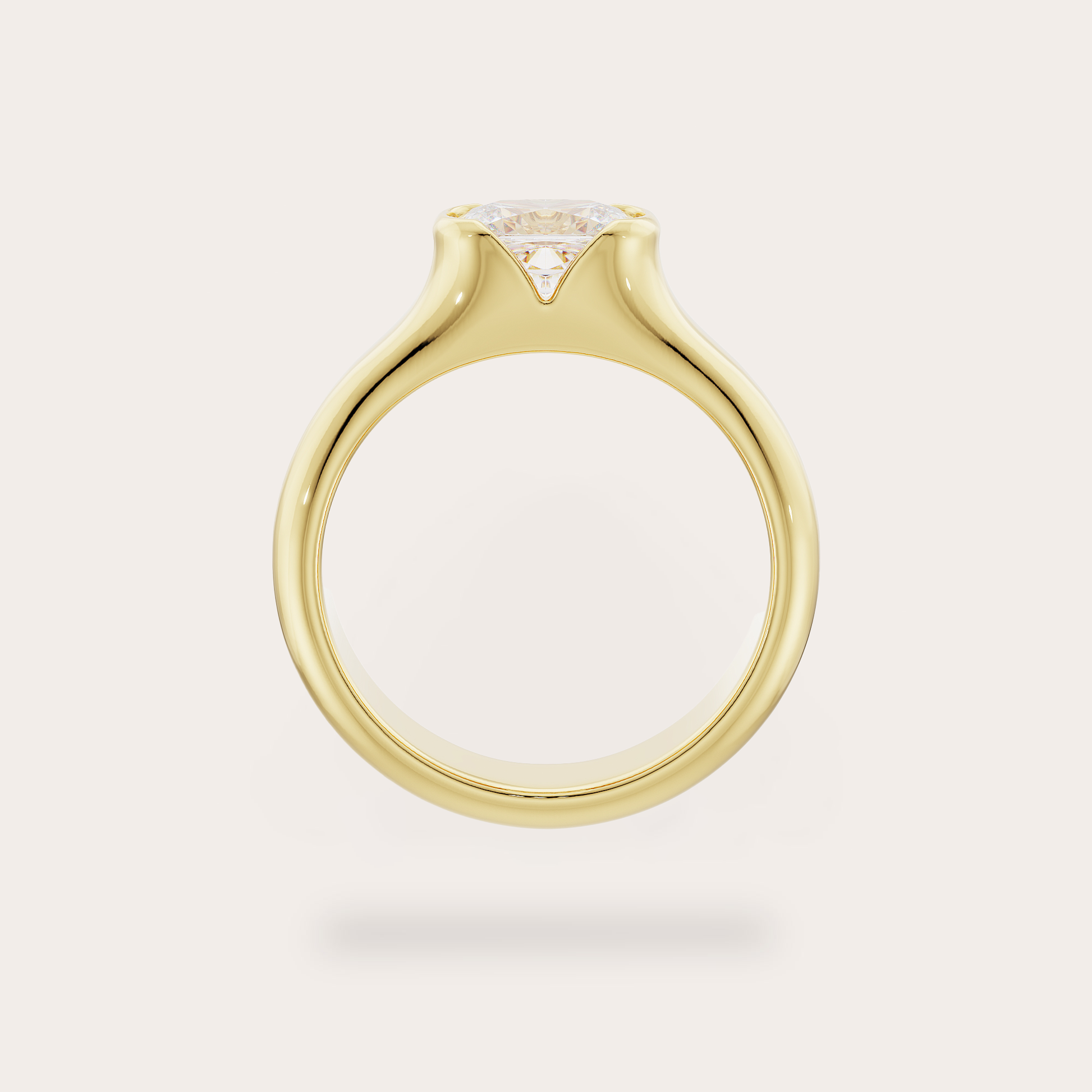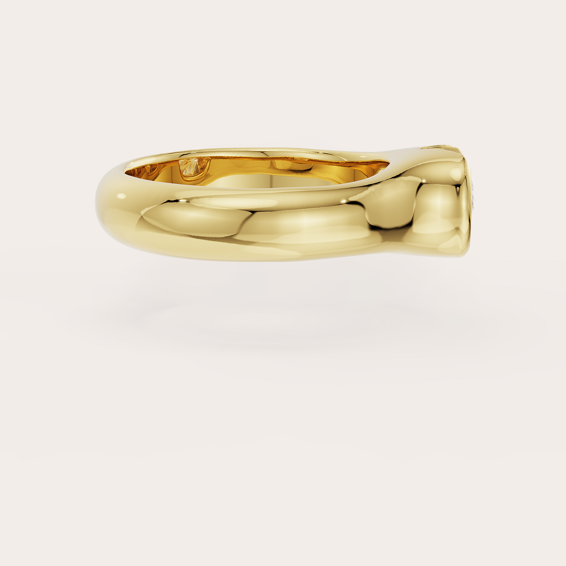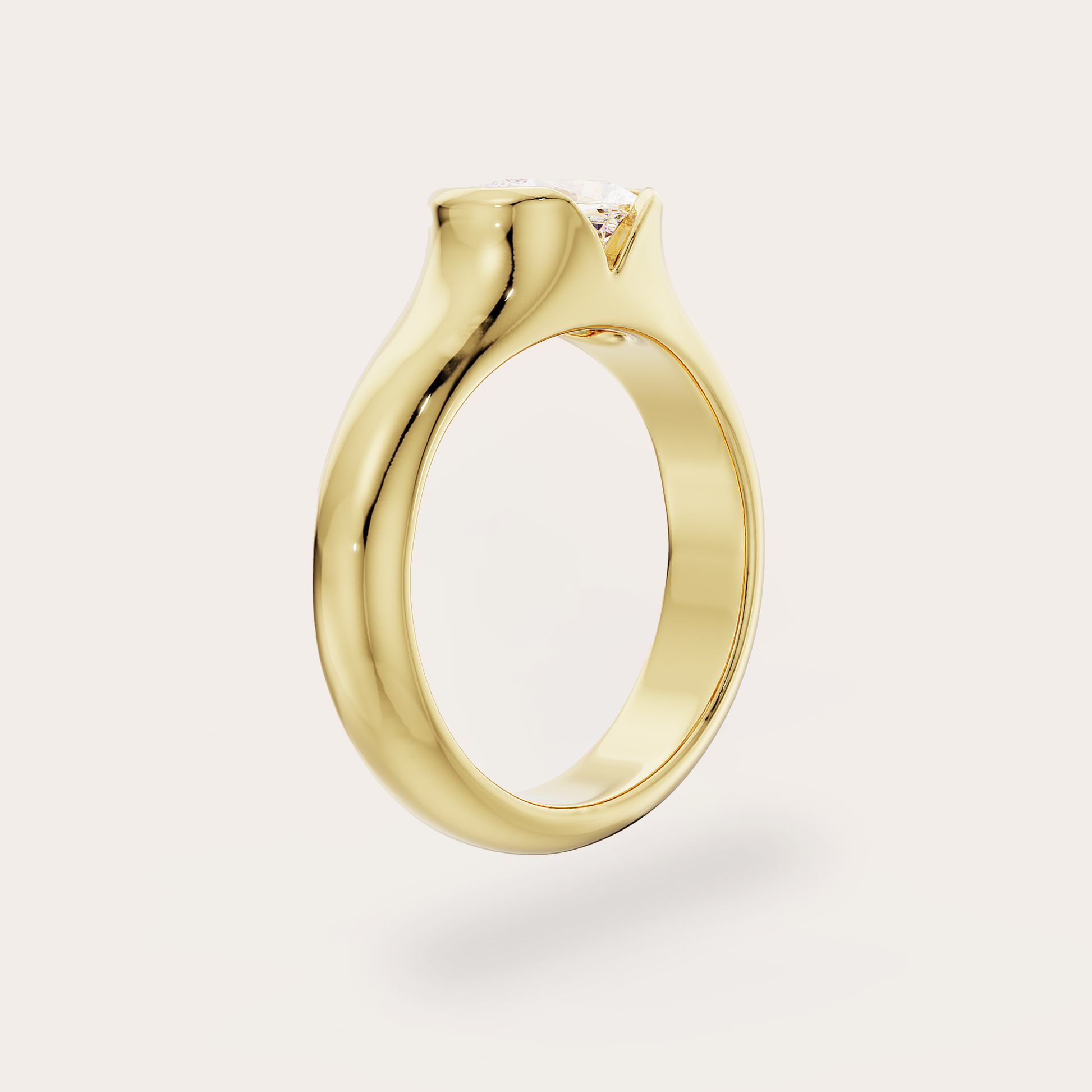 Bezel set with signet sensibilities. Available in brushed or high polish 18k gold. Setting only. Please contact us to source your center stone. Each Embrace Ring is made-to-order and requires a lead time of 4 to 6 weeks. If your size is not shown, please choose the option closest and leave a note at checkout.