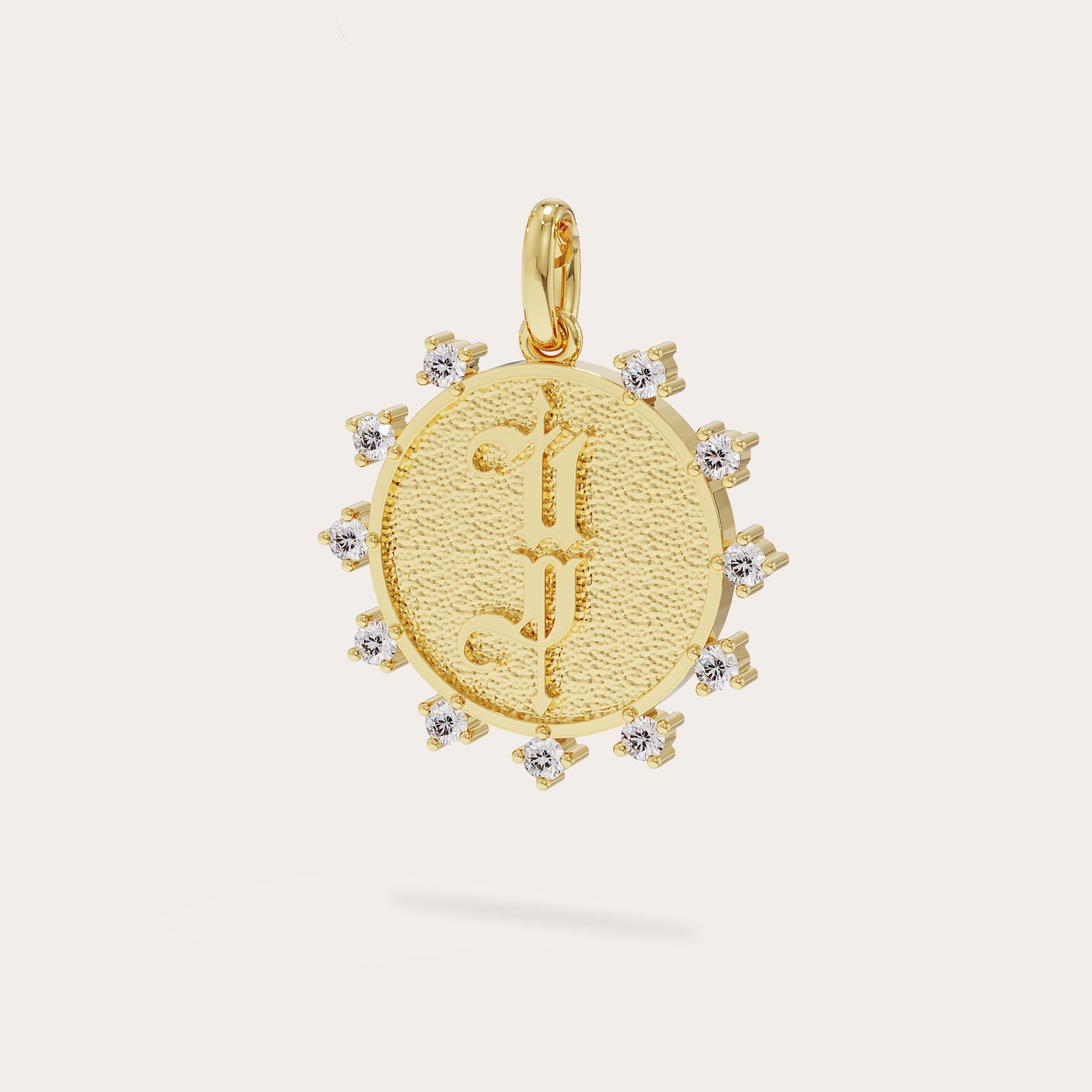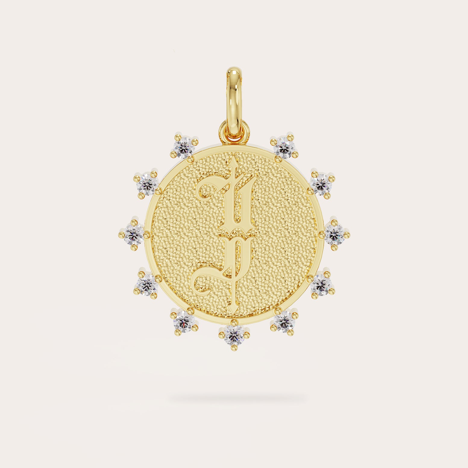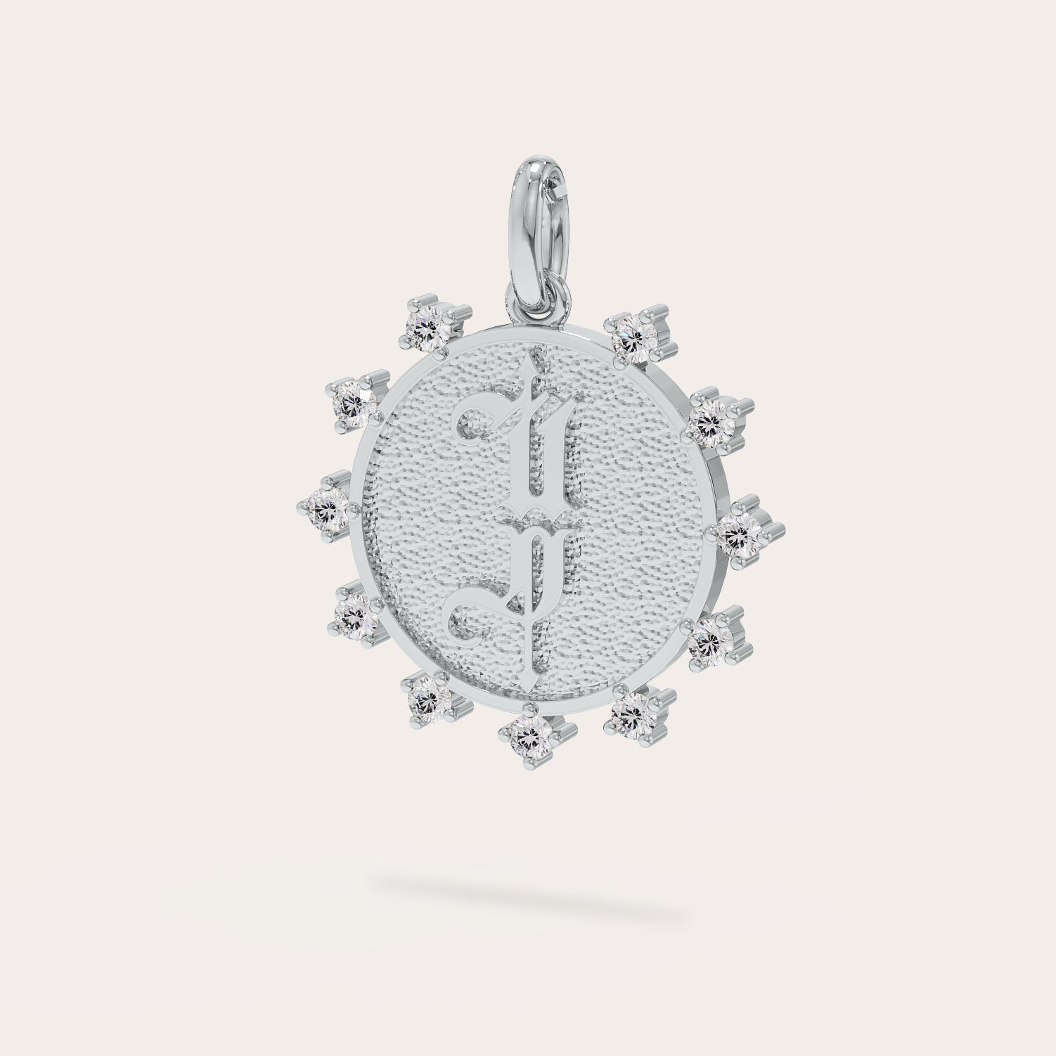 The Mini Rune Medallion celebrates whomever you decide: state yourself or carry a loved one (or two) wherever you go. The Mini Rune Medallion is the little sister to the Rune Medallion, and features 11 round cut diamonds for a .33 total carat weight. Each Mini Rune is made to order and requires a lead time of 4 to 6 weeks.