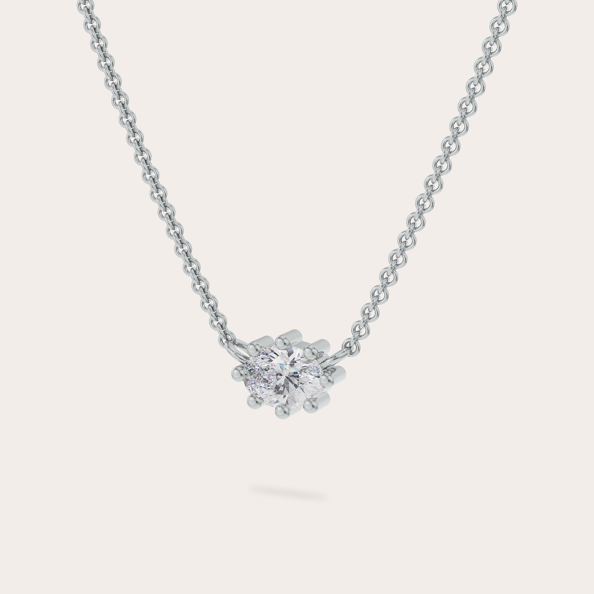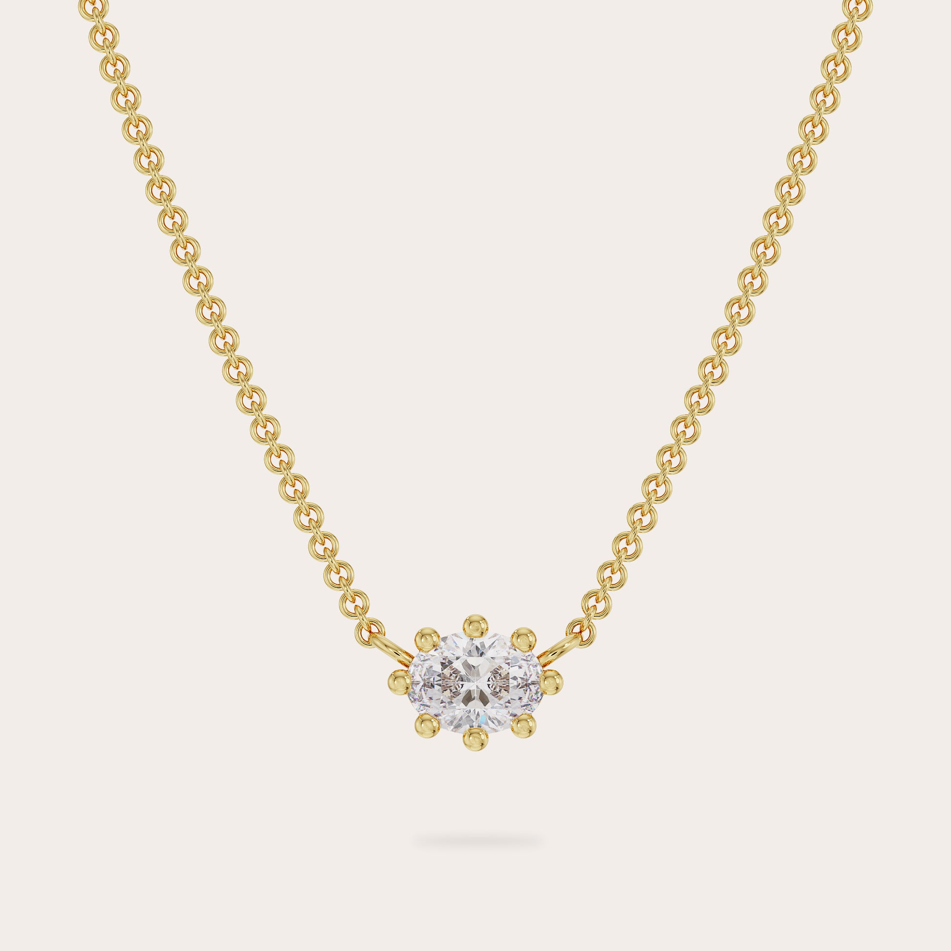 Playful prongs hold your diamond close. At collarbone length, the Poppy Necklace is an intimate iteration in our Poppy Collection. Each Poppy Necklace is made-to-order and requires a lead time of 4 to 6 weeks.